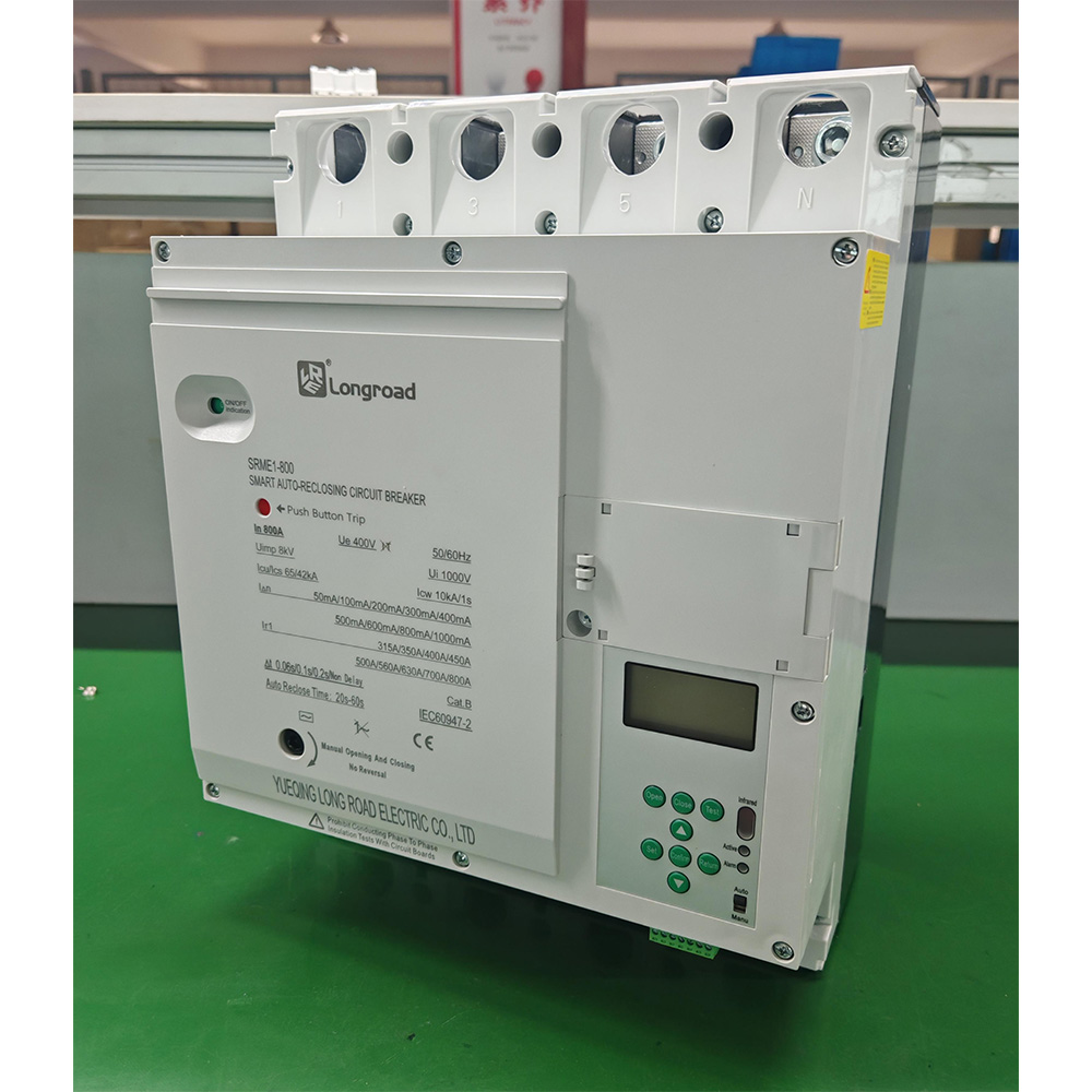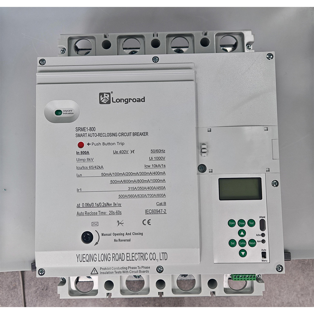 The SRME1-800 4P 800A Auto-Reclosing Circuit Breaker is an IEC-standard compliant smart protection device from YUEQING LONG ROAD ELECTRIC CO., LTD, built for professional grid power distribution systems. Rated for AC 50/60Hz, 400V operating voltage and up to 800A rated current, this smart auto-reclosing circuit breaker fits 3-phase 4-wire TT distribution networks, integrating indirect contact protection, earth fault fire prevention, overload/short circuit safeguard, and over-voltage/under-voltage/phase loss protection. It also enables efficient power distribution and line protection for large-scale industrial and grid projects, reducing maintenance costs and improving power supply stability. Fully compliant with IEC60947-2, IEC61008, IEC61009 and IEC62026-1, it is the optimal choice for commercial and industrial electrical contractors, power grid operators and distribution automation project integrators.