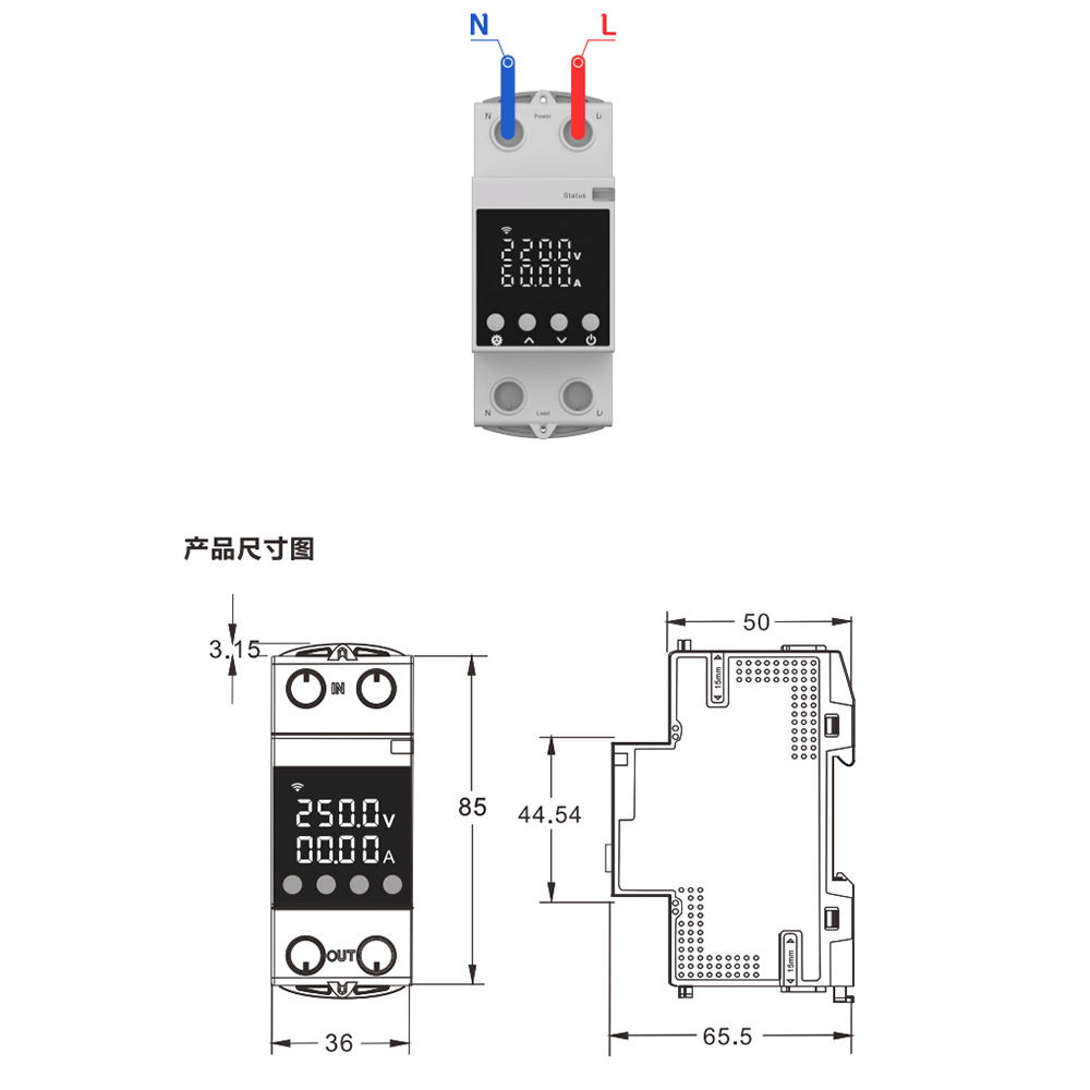 The single-phase rail-mounted Smart WIFI Switch is a product that meets users' needs for circuit protection and control. The product features functions such as metering, timing, fault protection, remote control, and local control