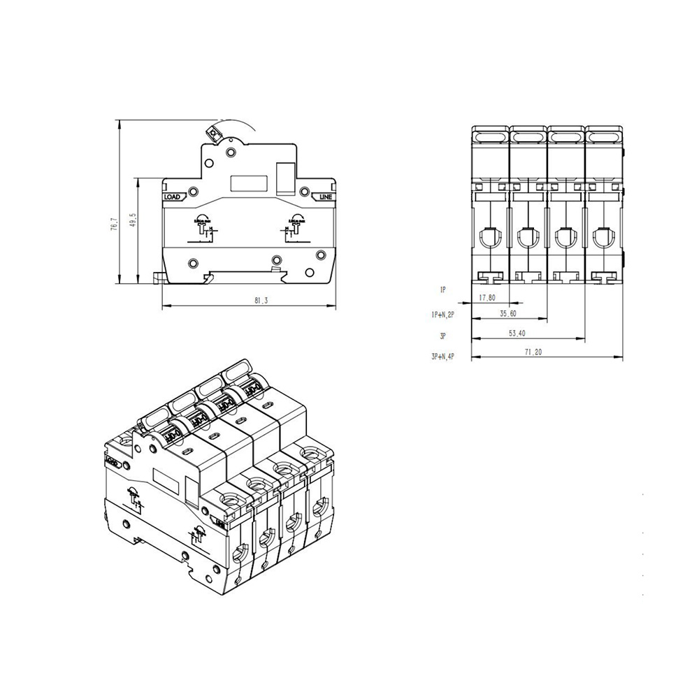 1P+N type: Synchronously disconnects the neutral wire, but the neutral wire has no protection function, with higher safety.