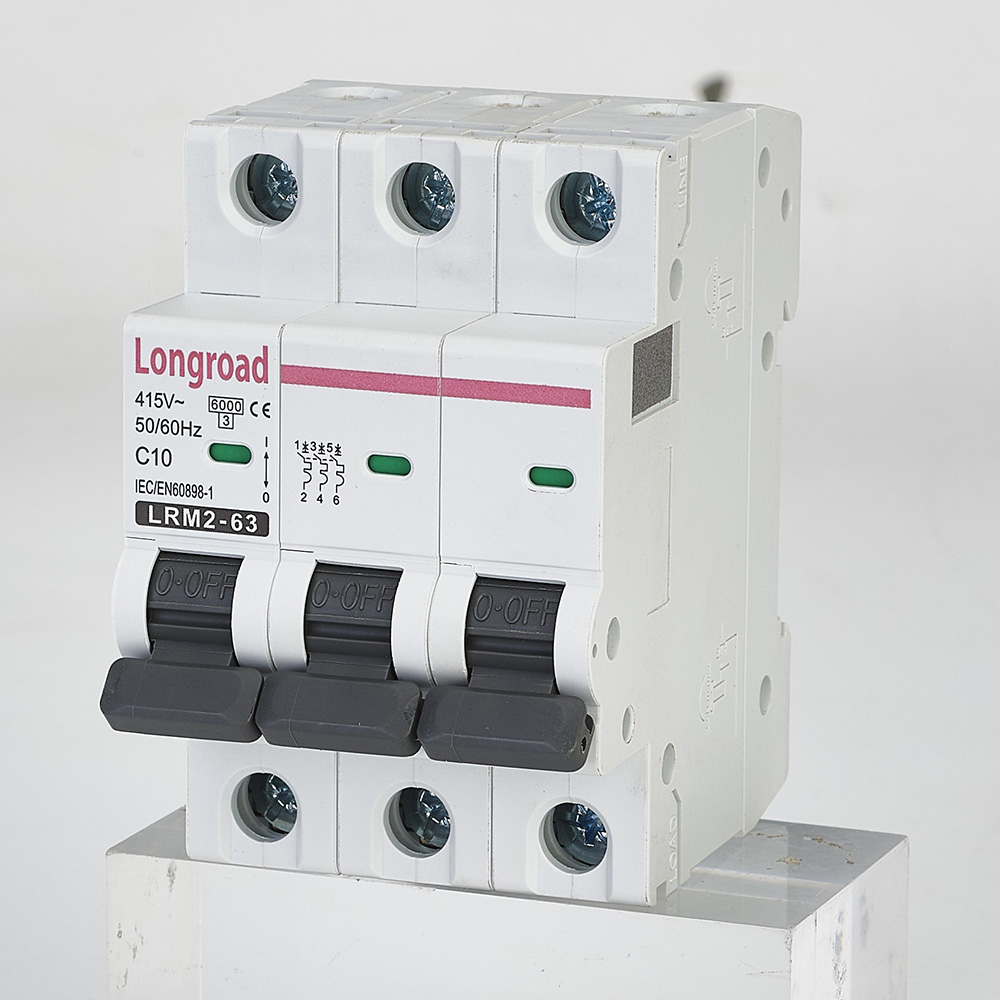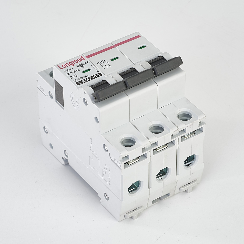 When the three-phase circuit operates under long-term overload (the current exceeds the rated current of the breaker), the internal bimetallic strip deforms due to heat, triggering delayed tripping to cut off the power supply. It effectively prevents wire overheating, insulation aging and circuit damage caused by long-term overcurrent.