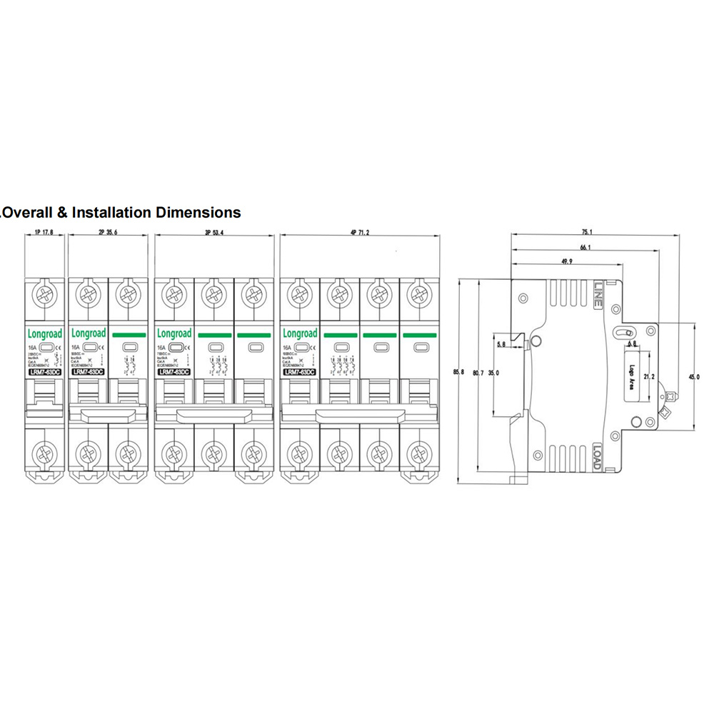 5. Accurate and stable protection characteristics: Equipped with overload long-delay and short-circuit instantaneous protection, whose operating characteristics match those of PV modules to avoid mis-tripping or failure to trip.